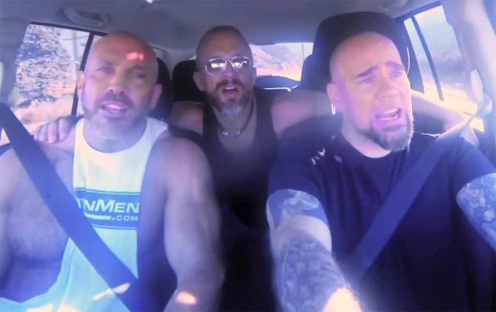 On a car ride after a shoot for TitanMen, director Jasun Mark decided to shoot this little bit of car lip syncing featuring porn stars and real-life husbands, Dirk Caber and Jesse Jackman.