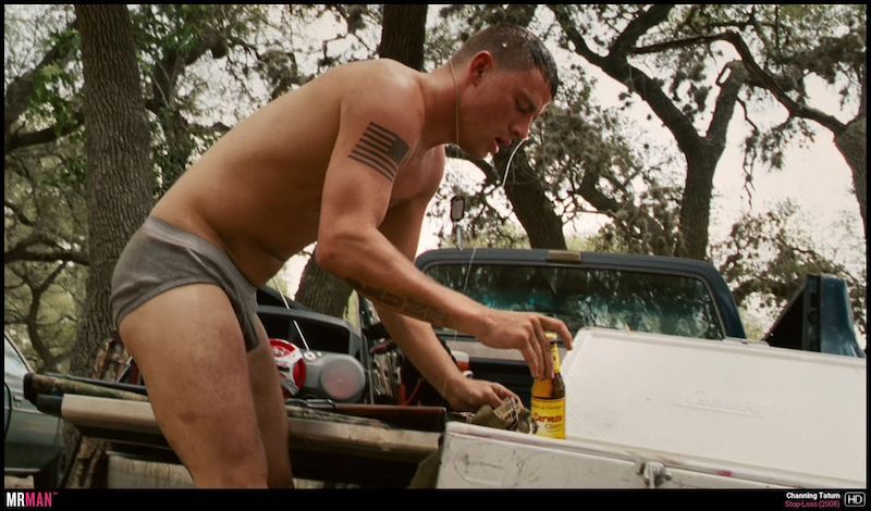 Before ever getting naked, Channing Tatum grabbed his penis through his underwear in 2008’s Stop-Loss.