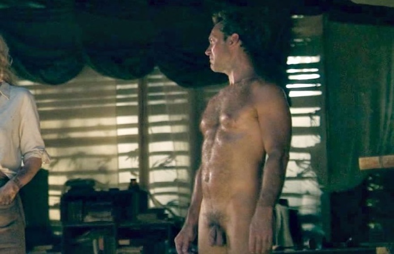 Law isn’t afraid to greet Ana De Armas head on. Penis head on, that is. He stares her down with his sexy scowl as she declares that the newspapers didn’t do him justice. He’s a stud, alright. Law’s swinging penis is clearly visible in this lengthy and incredible frontal shot that is bound to go down as one of the best A-lister nude scenes of all time. While Law’s intent is to intimate the cash-grabbing party girl off of his island, this enticing cock just may have the opposite effect…