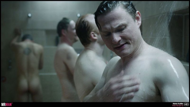 However, we get an even better look at Reimelt’s penis in a shower scene. He joins a bunch of fully naked men, and let’s just say some of them must have left that shower feeling mighty jealous. Or horny. This is a gay police training camp after all. We’re loving all of the gay sex and hung cock in Free Fall, so we turned the best scenes into GIFs so you don’t have to! Max Reimelt is free, free ballin’! Take a look below and if you want to see even more from this flick, be sure to click here.