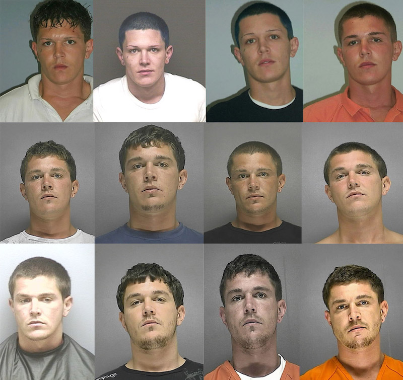 Sebastian did scenes with many top studios in the late 2000s, but his behavior caused him to quickly became one of the more problematic members of the gay porn community. He now has over a dozen arrests to his name and, among other things, was found guilty of beating his wife in 2013 and was charged with raping and giving an STD to his 5-year-old daughter in 2016. You can see some of his mugshots below: