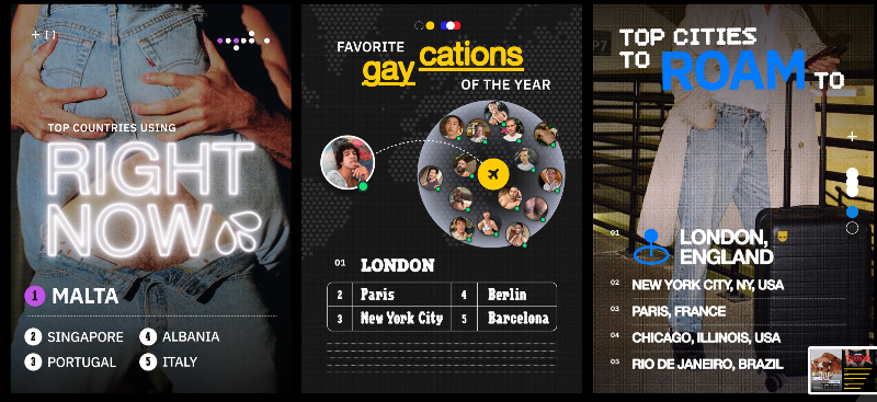 Have you been using the Right Now feature on Grindr? Malta uses it the most. The favorite gay vacation destination? London, which is also the top city to roam to.