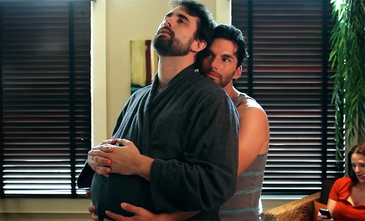 I’m not sure if they get into the nitty-gritty of the delivery, but the premise of this new gay romantic comedy, Paternity Leave, is that a bottom gets pregs by his boyfriend of four years, and it’s a “medical miracle,” and hilarity ensues.