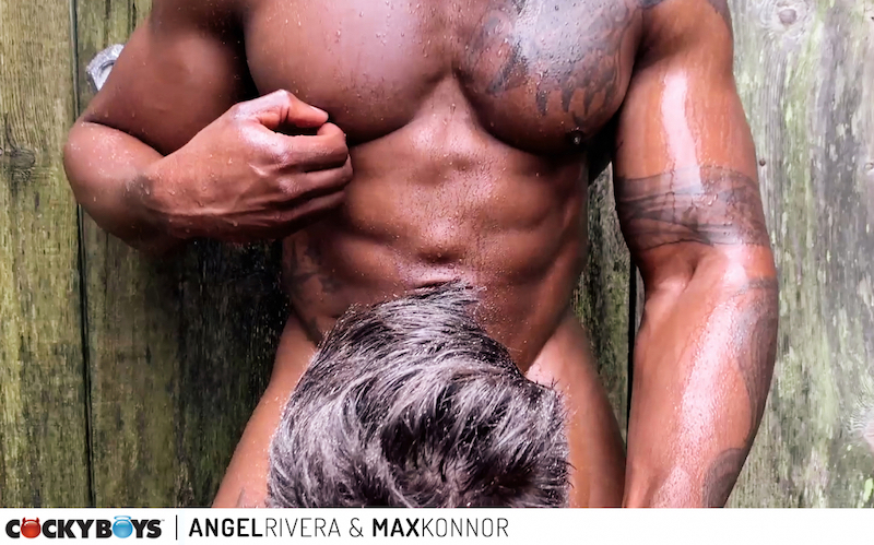 The new scene is set on Fire Island and features Max and CockyBoys exclusive Angel Rivera fucking around in a pool, on a bench, and in an outdoor shower. Throughout the scene, we get some great shots of Angel’s hungry hole as it swallows Max’s giant member and some beautiful views of Max’s ridiculously fit, naked body.