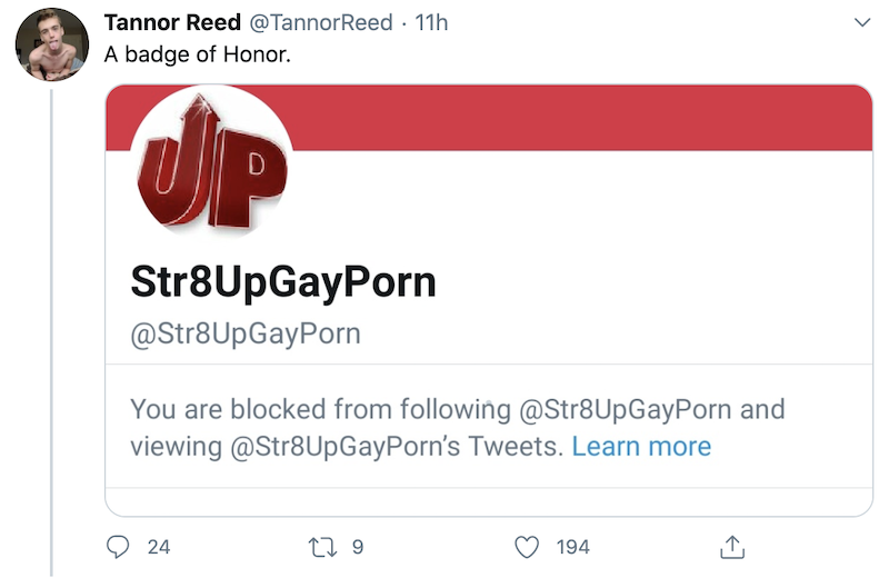 Reed posted that he was blocked by the blog on Twitter. Many people responded to Reed’s tweet with their own screenshots to share that they had also been blocked by Str8Up. The star went on to call the blog’s voice “toxic.”