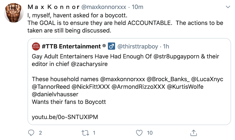 Konnor has been one of the more vocal opponents of Str8Up’s overdose tweet. The star tweeted out a video about the situation last night where he criticized the blog for using their platform to “condemn this group of people to death via drug overdose.” Konnor emphasized this morning that he has not called for a boycott of the site, but wants “to ensure they are held accountable.”