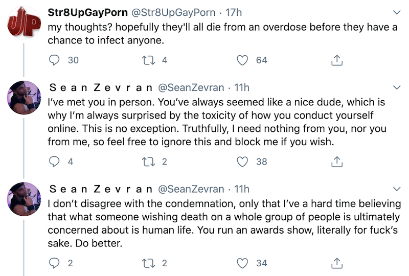 St8UpGayPorn was right to call them out and say what needed to be said. Those porn stars telling him he needs to be compassionate and not wish people death? what about the actions of the party goers?