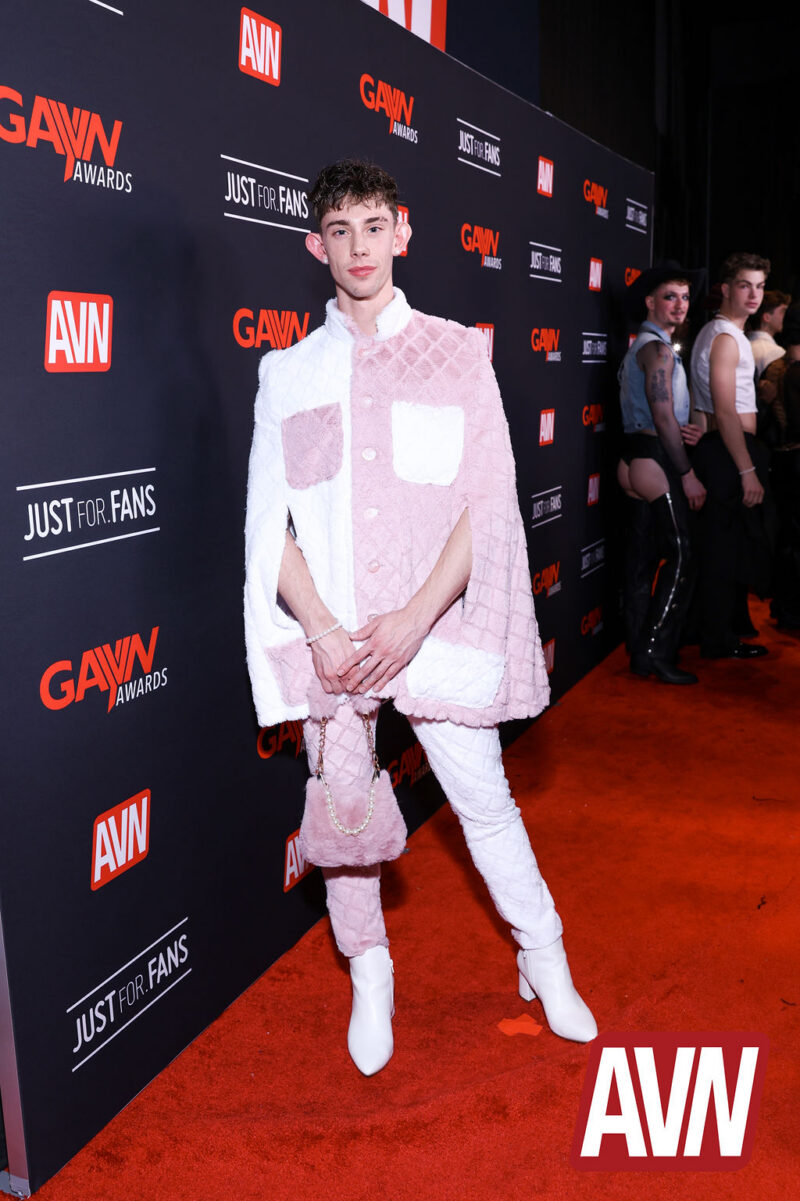 The 2024 & 2025 GayVN Performer of the Year used bold color to accent his classic suit. [WATCH]