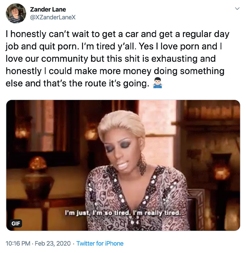 Zander Lane just announced on Twitter that he’s taking a step back from porn to focus on his mental health. Last night he posted how tired he was and how he “can’t wait to get a car and get a regular day job and quit porn.” Less than twelve hours later he announced his retirement.