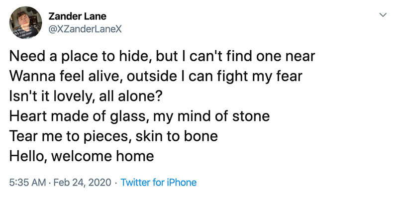 He then posted some lyrics to the Billie Eilish and Khalid song “Lovely.”